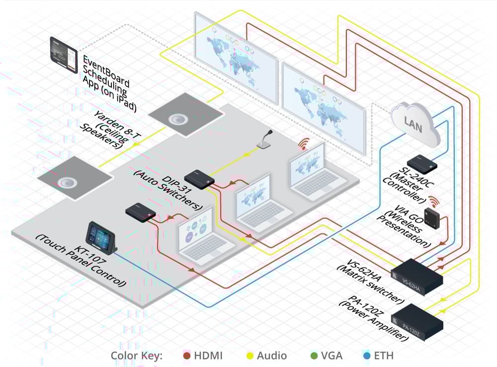 - Flexible Control Options - Front panel buttons, IR remote (available upon request) , optional external remote IR receiver, RS-232, Ethernet, buttons and LED over contact closure, embedded Web server, Kramer Protocol 3000 support.