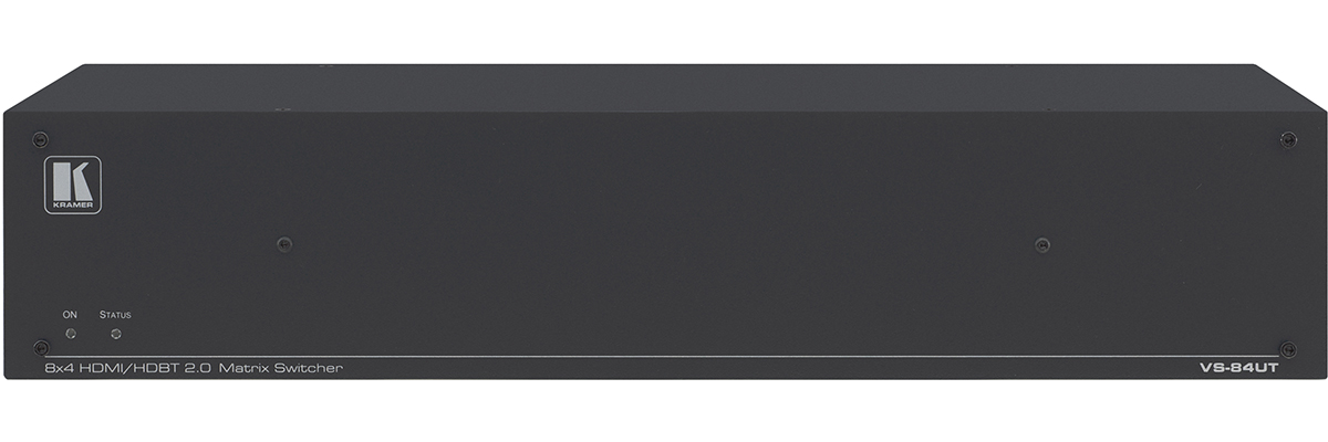 VS−84UT to wszechstronny system prezentacji audio–wideo 4K@60Hz (4:2:0) z zintegrowanym zasięgiem rozszerzania i zintegrowanym systemem głównego kontrolera pomieszczenia. Urządzenie przełącza sygnał wideo, wbudowuje dźwięk i wysyła sygnał zarówno do HDMI™ jak i HDBaseT 2.0 z rozszerzeniem USB i PoE na portach wyjściowych HDBaseT. Znakomite wsparcie audio obejmuje zbalansowane stereo audio, niezbalansowane stereo audio i źródła audio bez osadzenia, które wyjściowo przekazują do osadzonego audio, zbalansowanego stereo audio, jak również do wzmacnianego audio w wyjściu.