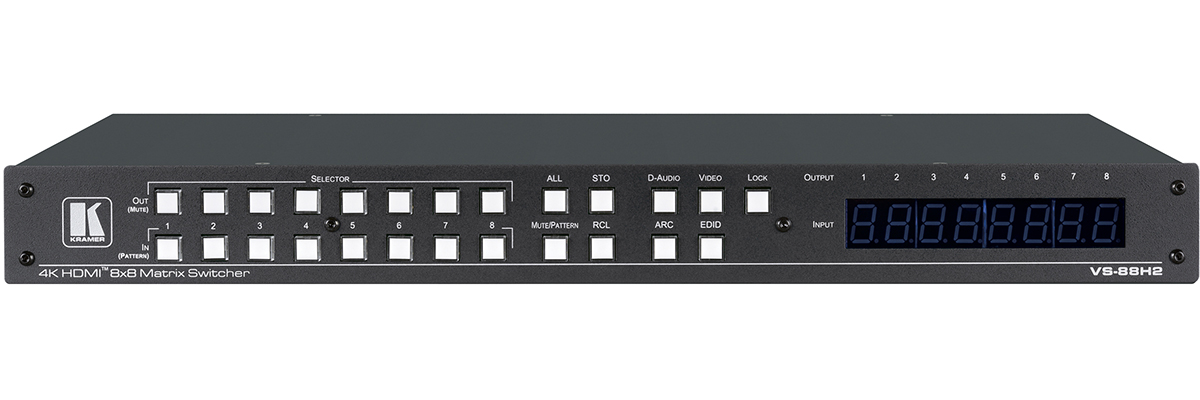 VS-88H2 to wysokowydajny przełącznik matrycowy 8x8 dla sygnałów 4K@60Hz (4:4:4) HDR oraz cyfrowego przekierowania dźwięku. Regeneruje i wyrównuje sygnały oraz może kierować dowolne z 8 źródeł HDMI, zgodnych z HDCP (do wyboru), do dowolnego lub wszystkich wyjść jednocześnie. VS-88H2 oferuje niezrównaną elastyczność dźwięku, gdzie dowolne osadzone cyfrowe dane wejściowe mogą być przekierowane na dowolne wyjście cyfrowe, oprócz ośmiu źródeł ARC, w celu wytworzenia równoważnej matrycy audio 16x16.