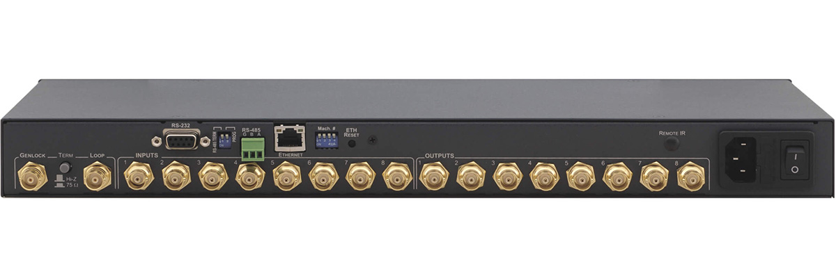 - Elastyczne opcje sterowania - Panel przedni, RS-232 (oprogramowanie na bazie Windows® K-Router Plus™ jest załączone), RS-485, Ethernet, zamykanie kontaktu i pilot IR (dostępny na życzenie).