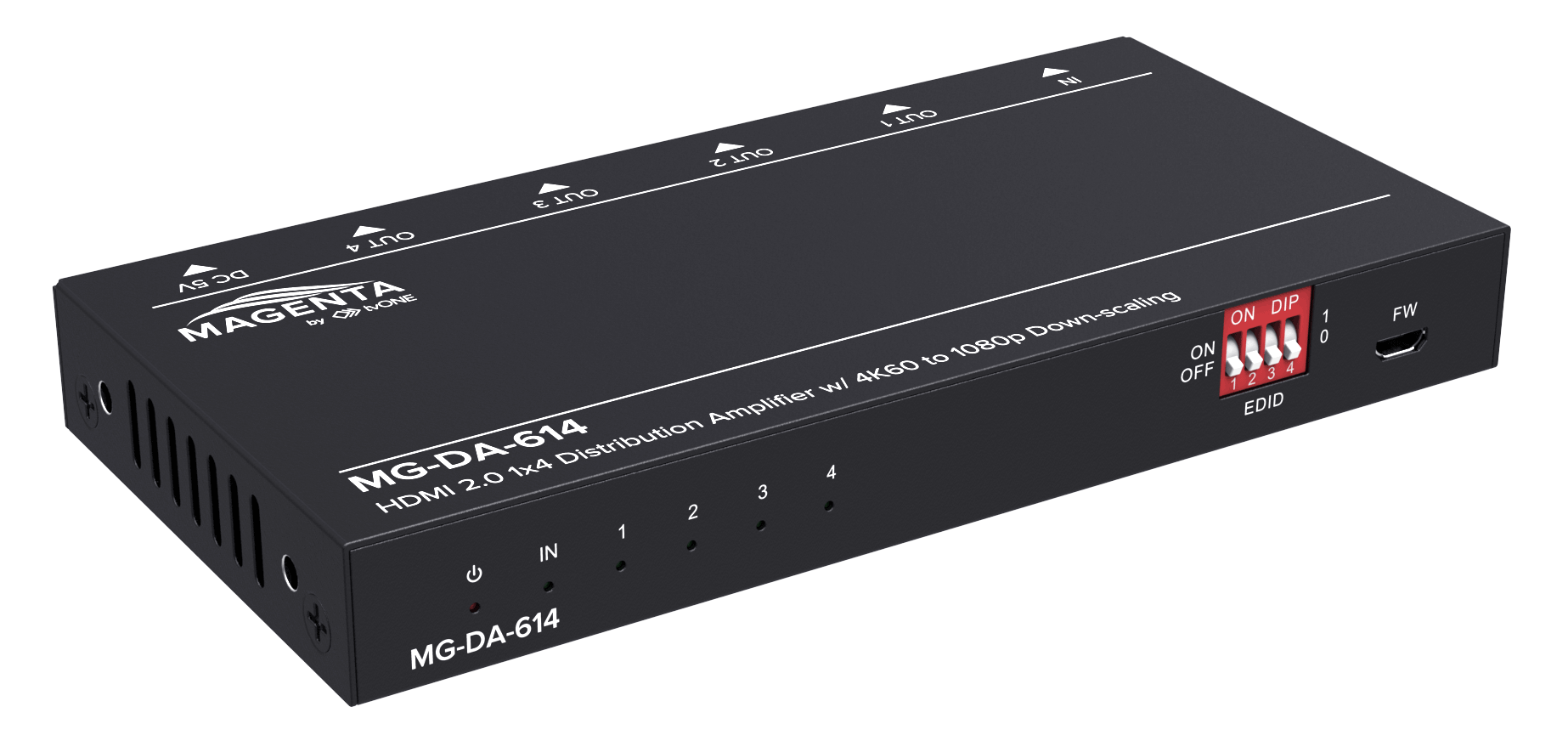 Seria ultra-smukłych rozdzielaczy i wzmacniaczy dystrybucyjnych HDMI 2.0 MG-DA-61x firmy Magenta Research zapewnia wysokowydajne rozwiązanie do dystrybucji sygnałów HDMI z wyjściem wideo do rozdzielczości 4K2K@60Hz (YUV444) i obsługą HDR (High Dynamic Range Imaging), co daje najbardziej realistyczne wrażenia wideo. Obsługa obejmuje również do 32 kanałów audio z częstotliwościami próbkowania do 192kHz i przepustowość 7.1 kanałów cyfrowego audio, w tym wysokorozdzielcze formaty cyfrowego audio, takie jak LPCM 7.1CH, Dolby TrueHD, Dolby Digital Plus, DTS-HD Master Audio i Dolby Atmos.