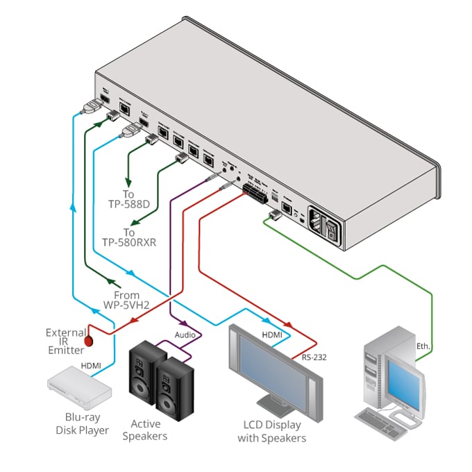 - Koszt–efektywne utrzymanie — Wskaźniki stanu LED dla portów HDMI i HDBT ułatwiają lokalne konserwacje i rozwiązywanie problemów. Zdalne zarządzanie urządzeniem IP poprzez wbudowane strony internetowe lub połączenie kontrolne RS–232. Lokalna i zdalna aktualizacja firmware poprzez mini–USB, połączenie RS–232 lub Ethernet oraz narzędzie K–Upload, w celu zapewnienia długotrwałego, sprawdzonego w terenie wdrożenia
