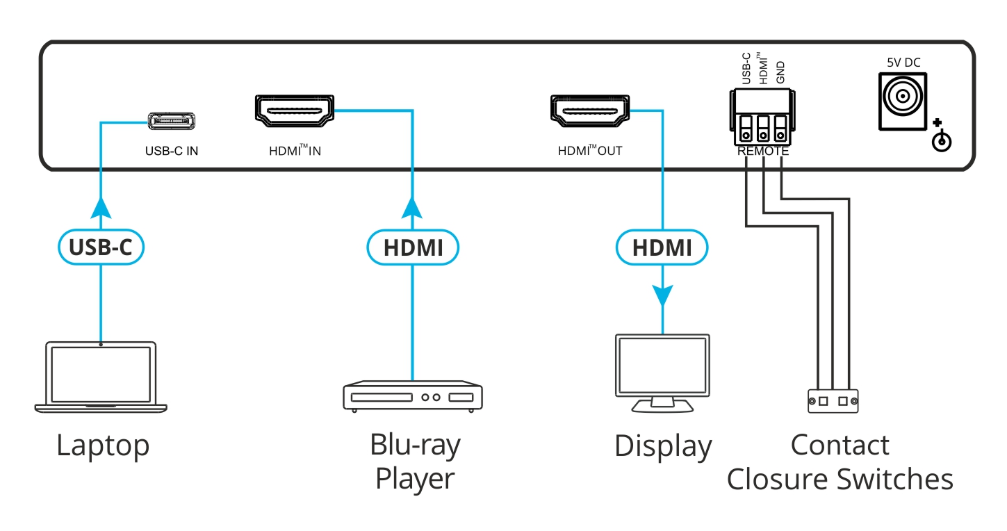- Wygodna kontrola — Sterowanie urządzeniem za pomocą OSD (na ekranie) za pomocą przycisków na panelu przednim oraz przycisków wyboru wejścia, zamarznięcia wideo i resetowania rozdzielczości na panelu przednim. Dodatkowo, połącz się z zaciskiem stykowym dla zdalnego przełączania źródeł. Wszystkie ustawienia są zapisywane w nieulotnej pamięci.