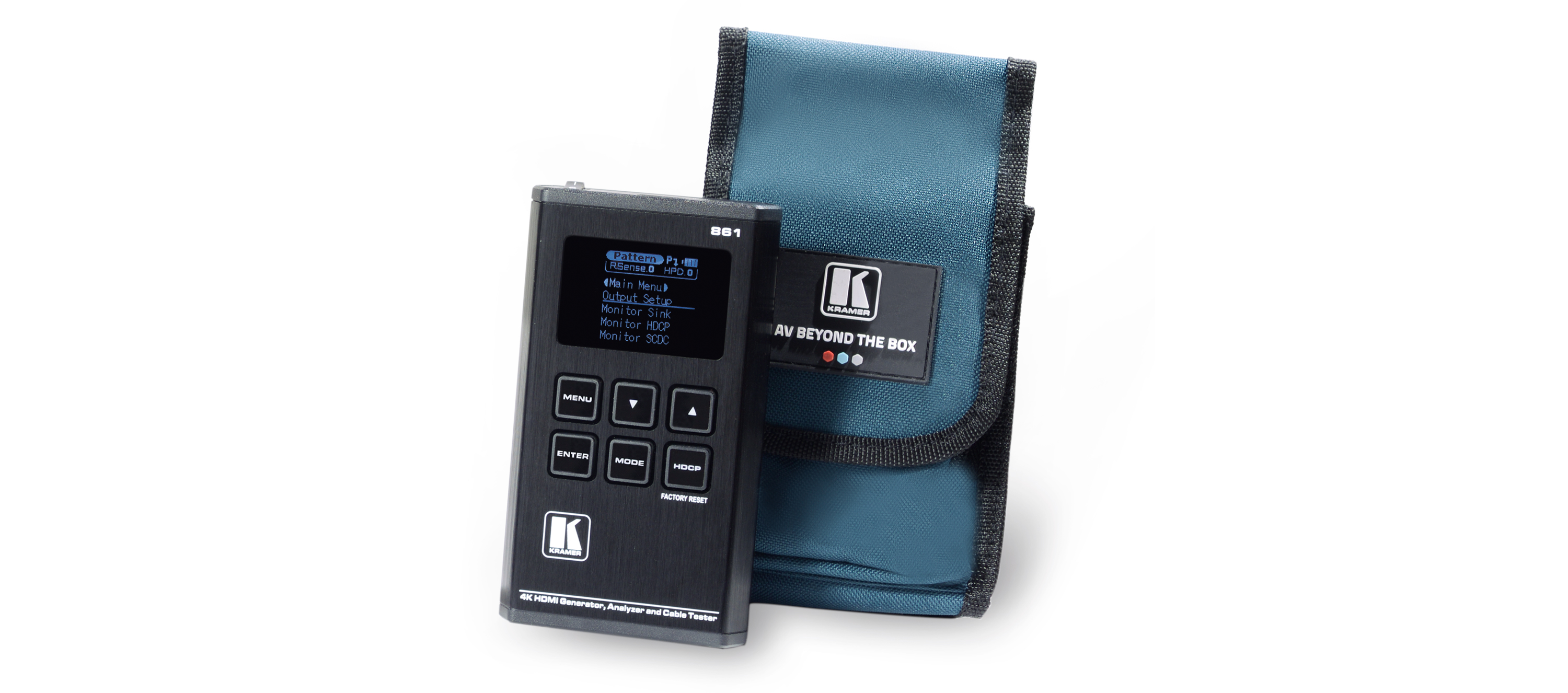 Z 23 wbudowanymi rozdzielczościami, 11 wzorcami testowymi i ponad tuzinem rodzajów funkcji analizy AV, ta jednostka oferuje ogromny zakres opcji testowania. Analiza pakietów danych HDMI, EDID i HDCP jest obsługiwana wraz z możliwością przesyłania i emulacji EDID. Dodatkowo, można monitorować Kanał Danych Statusu i Kontroli (SCDC), co umożliwia wykrywanie i analizę sygnału HDMI 18G. Do 8 kanałów dźwięku LPCM można wygenerować tony testowe z szerokim zakresem częstotliwości i poziomów dźwięku.861 jest przenośny i wytrzymały, zawiera wysokiej jakości