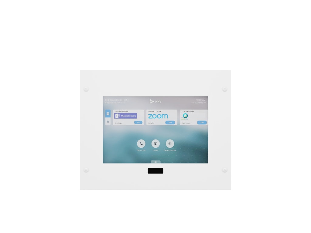 Mocowanie w ścianie Poly GC8 zapewnia bezpieczeństwo i dostępność panelu GC8 w pomieszczeniach Microsoft Teams. Panel GC8 jest kompatybilny z Poly G10-T, Poly G40-T oraz Poly G85-T.