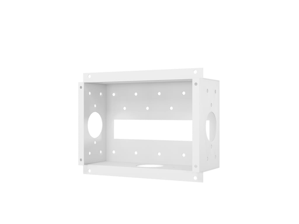 Montaż GC8 na ścianie zapobiega możliwym uszkodzeniom i zgubieniu urządzenia oraz zapewnia łatwy dostęp do kontrolera z ekranem dotykowym, co gwarantuje maksymalną użyteczność. Panel bezpiecznie mieści się w puszce podtynkowej. Dodatkowo, puszka podtynkowa może być używana w aplikacjach po lub przed budową, co czyni ją idealną do nowych konstrukcji lub projektów renowacyjnych. Standardowe pudełko montażowe jest dostępne w błyszczącym białym wykończeniu.
