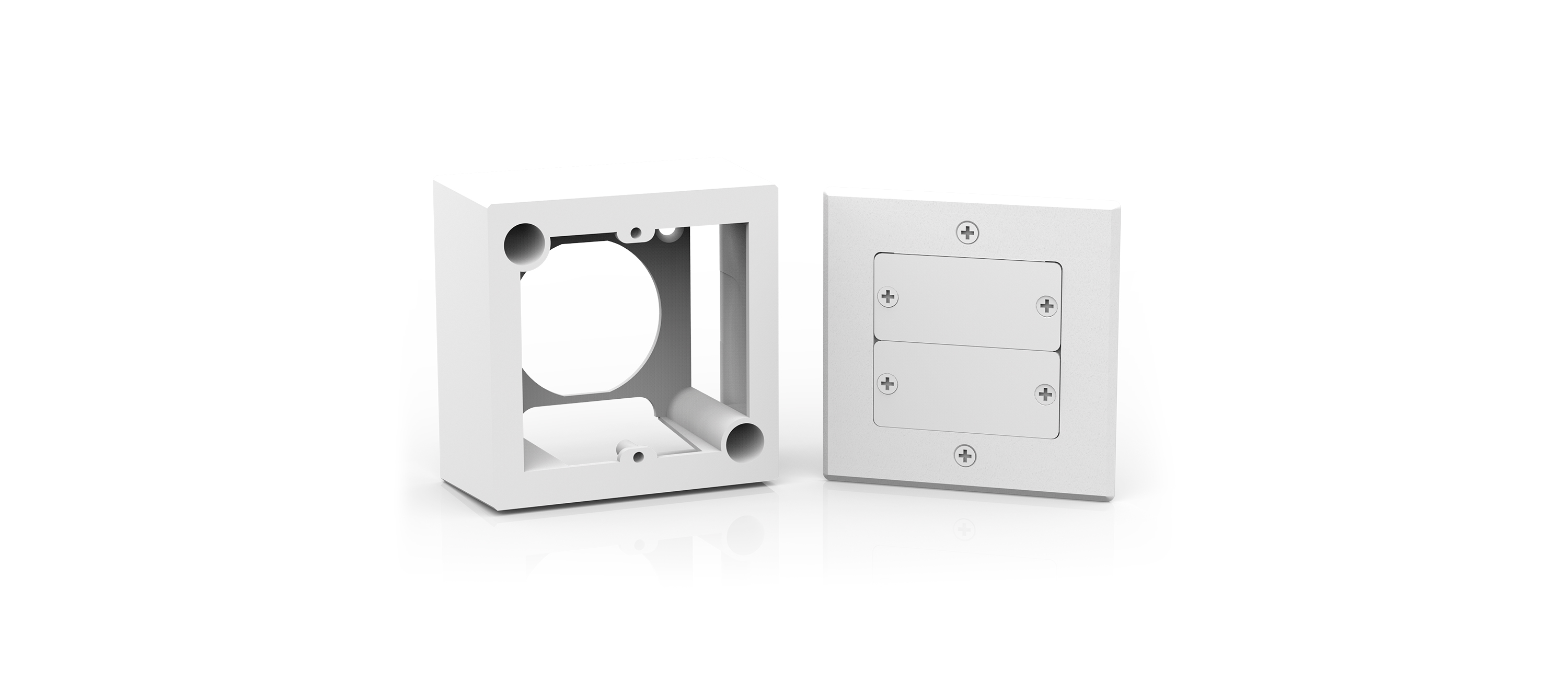 Naścienna skrzynka (EU) to biała plastikowa skrzynka umożliwiająca instalację pojedynczej europejskiej płyty ścienny o 1 lub 2 gniazdach. Skrzynka jest montowana na ścianie w miejscach, gdzie instalacja wewnątrzścienne nie jest możliwa.