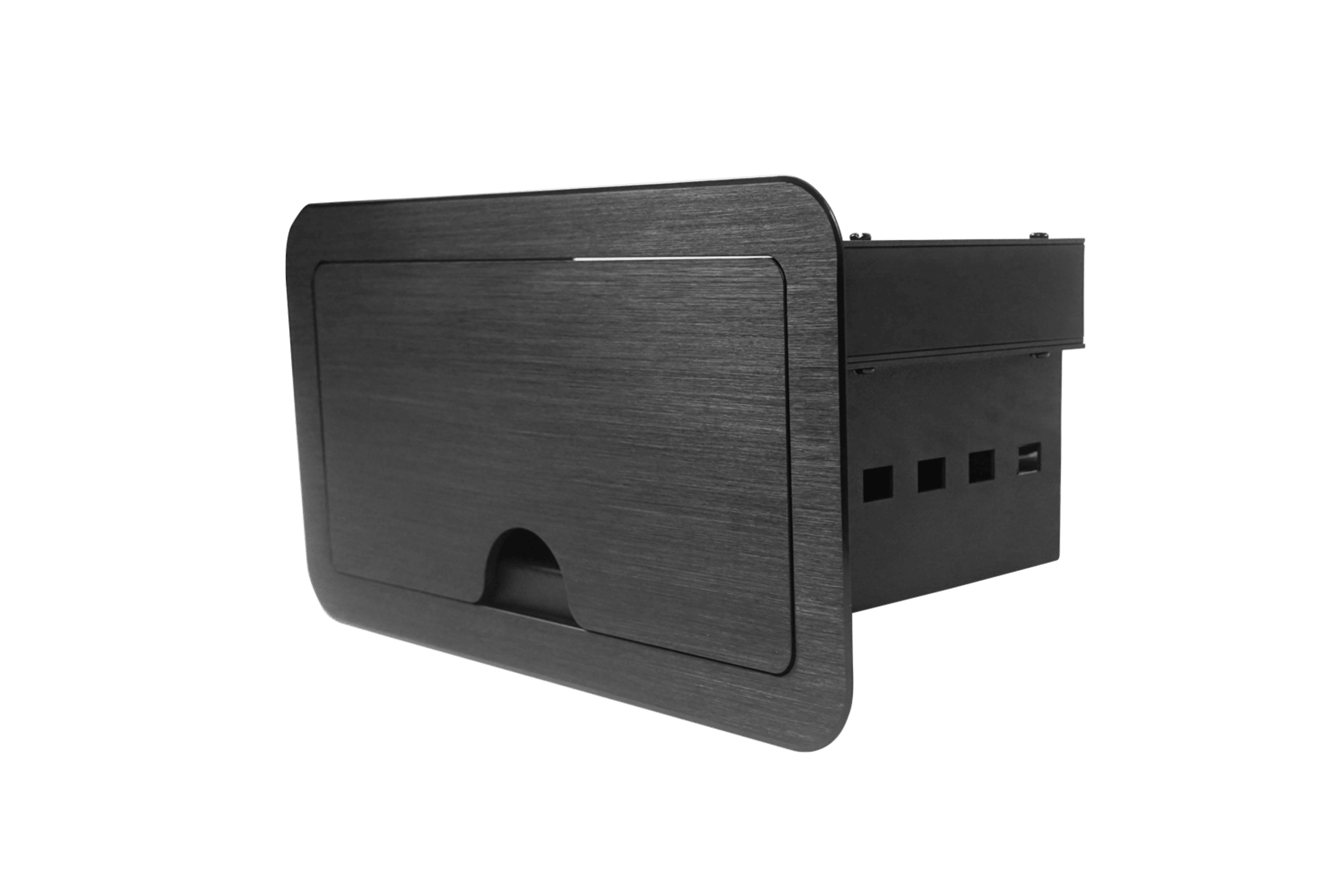 Kluczowe cechy: Elegancki, płaski design doskonale komponuje się z każdym biurowym otoczeniem. Przesuwana pokrywa z przepustem na kable. Kable o długości 5 stóp (1,5 m) łatwo wysuwają się i chowają do przechowywania. W zestawie kable: 2x CAT5e Ethernet, HDMI 1.4, USB 2.0 Type-A. Dwa niezagospodarowane przepusty na kable umożliwiają podłączenie do sześciu kabli. 8-bitowy