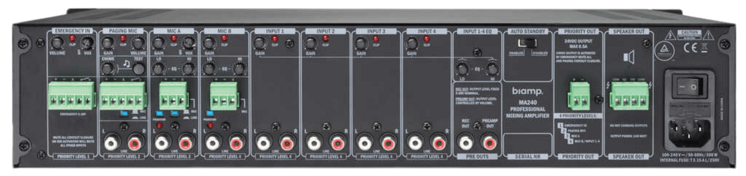 DESCRIPTION_PL: Kluczowe cechy: Intuicyjne panele przedni i tylny, Cztery poziomy priorytetów dla routingu audio, Cztery wejścia stereo, Dedykowane wejście alarmowe z wyłącznikiem wyciszenia, Wejście mikrofonu do komunikatów z kontaktem i dzwonkiem, Bezwentylatorowa konstrukcja, 5-letnia gwarancja. Zapytaj o ofertę