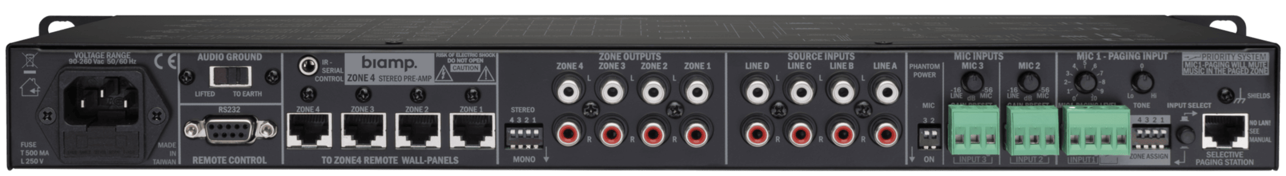 DESCRIPTION_PL: Kluczowe cechy: Sterowanie 4 strefami stereo i 4 niezależnymi źródłami muzyki. Możliwość przypisania do 3 mikrofonów na strefę. Kompatybilny z panelami zdalnego sterowania ZONE4R. Użyj mikrofonu MICPAT-4 do komunikatów głosowych. 5-letnia gwarancja. Niedostępny w USA i Kanadzie. Wyślij zapytanie.