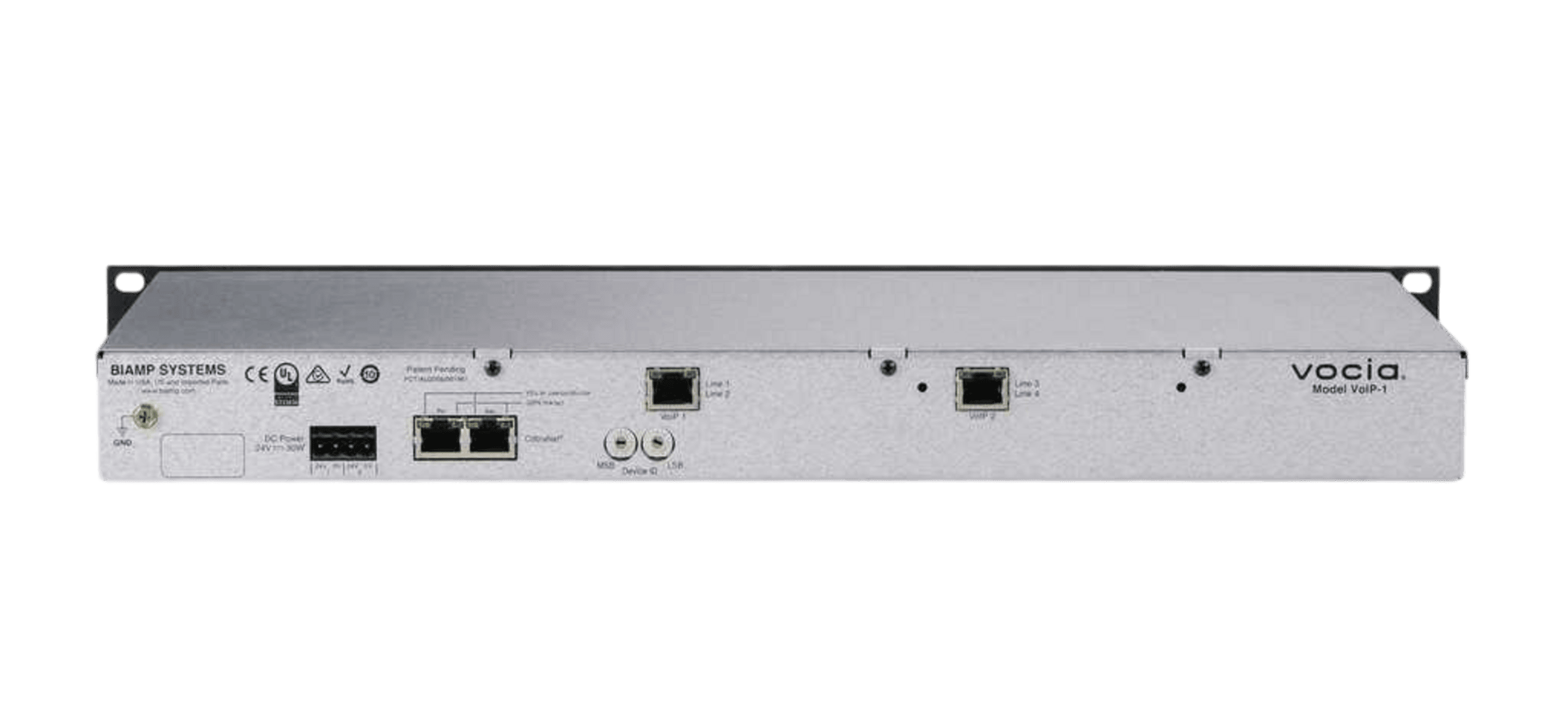 Kluczowe cechy: Konfigurowalny z dwoma lub czterema liniami VoIP, obsługa wielu kodeków, monitorowanie urządzenia, zasilanie przez podwójne wejścia 24V DC (zasilacz w zestawie), programowalne przetwarzanie sygnału, montaż w szafie rack 1U, sterowanie CobraNet® przez pojedynczy kabel Ethernet, podwójne porty CobraNet dla redundancji, przełączniki obrotowe.