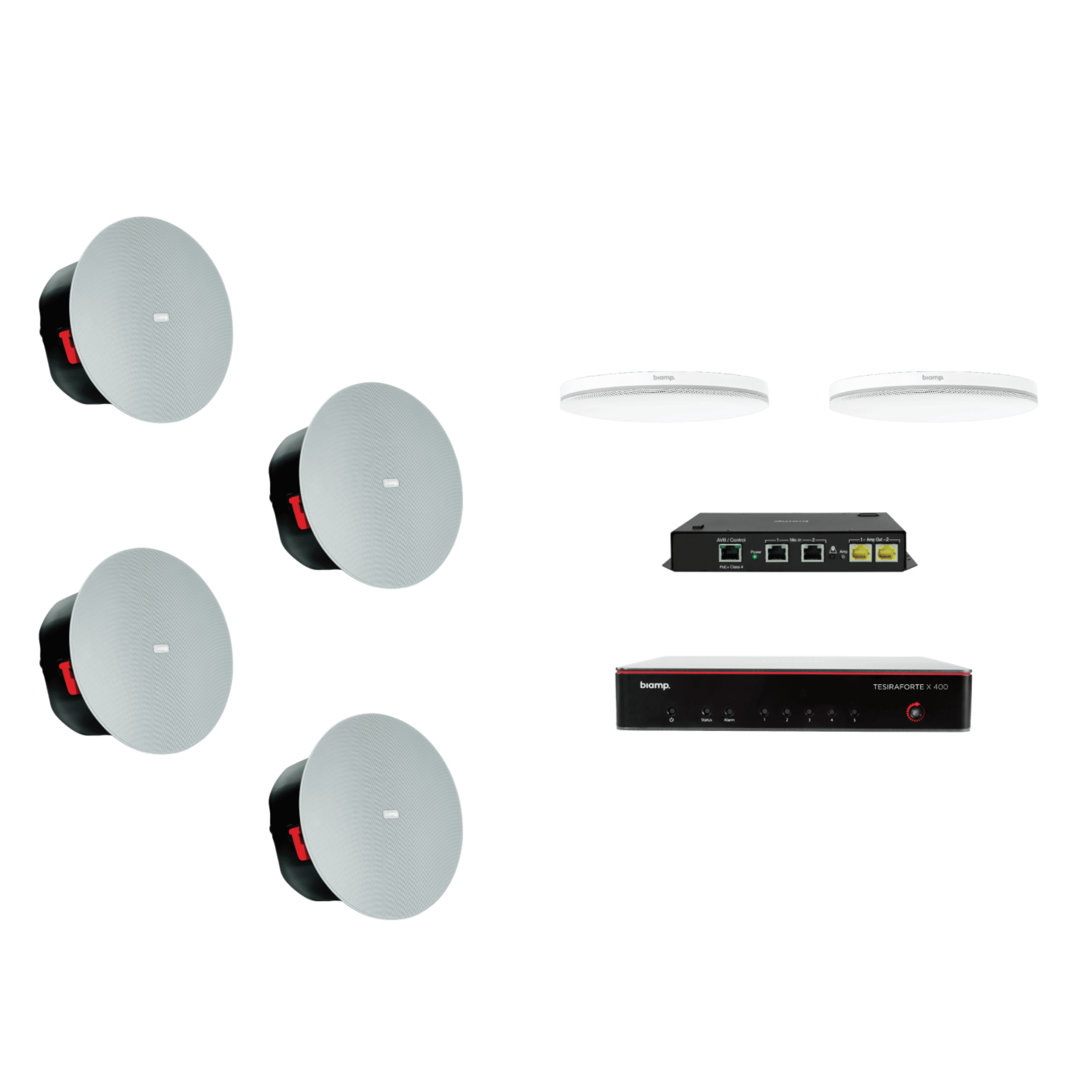 Kluczowe cechy: Brak konieczności programowania i automatyczna kalibracja z Biamp Launch. Indywidualna redukcja echa akustycznego (AEC) poprawia komfort zdalnych uczestników. Czyste audio nawet podczas jednoczesnej wypowiedzi wielu osób. Redukcja szumów minimalizuje problematyczne dźwięki, takie jak praca klimatyzacji. Głośniki zoptymalizowane pod kątem reprodukcji mowy w zastosowaniach konferencyjnych.