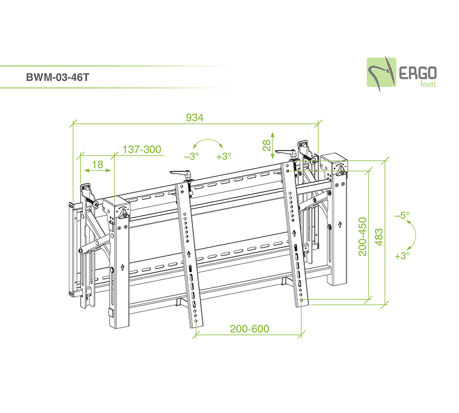 Uchwyt BWM-03-46T jest zaprojektowany w taki sposób, aby umożliwić stworzenie ściany wideo o dowolnej konfiguracji. Mechanizm wysuwany zapewnia łatwy dostęp do tyłu ekranu, ułatwiając proces konserwacji. BWM-03-46T nie może być pionowo, tylko poziomo.