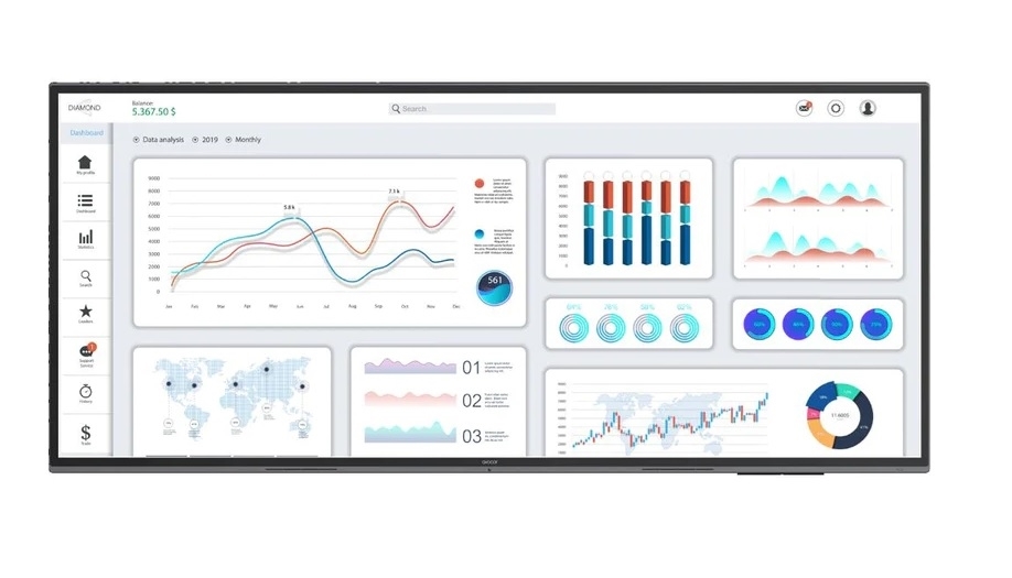 Avocor AVE-7530-A Avocor 4K LED Interaktywny ekran dotykowy z obsługą komercyjną, do 20 punktów dotyku, seria E 75" wyświetlacz, LED, czarny