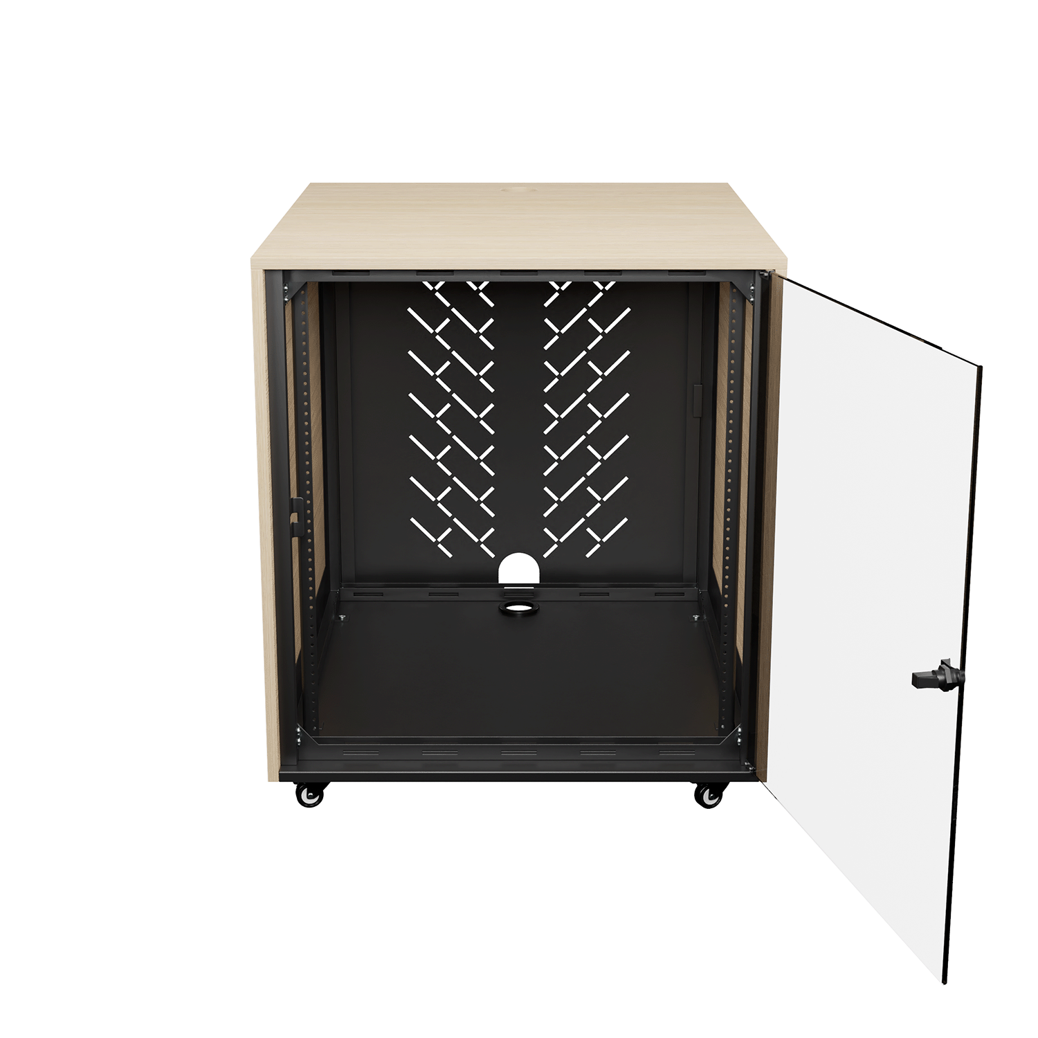 AVTEQ TR-12 Mobilna szafka, czarna/drewniana, 12 RU przestrzeni na półce
