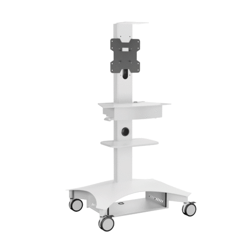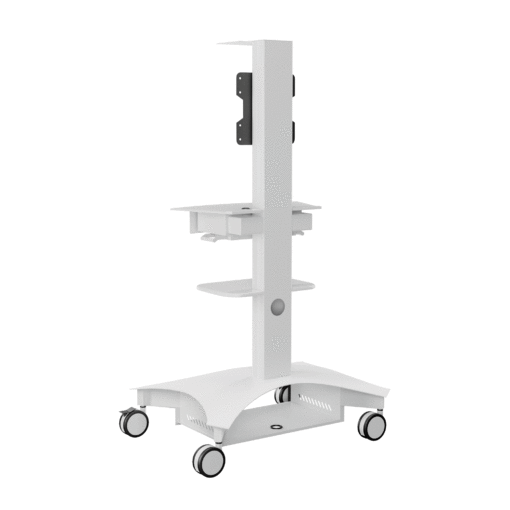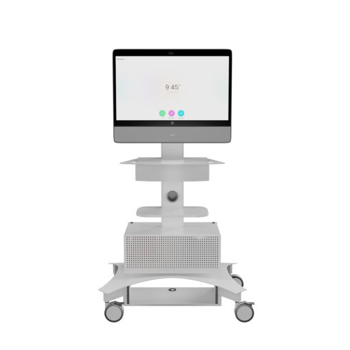 Lekki wózek telemedyczny TMP-200 zapewnia łatwość użytkowania i mobilność wymaganą do opieki nad pacjentem w placówce opieki zdrowotnej. Zmieniony model TMP-200 oferuje smukły profil i konstrukcję umożliwiającą przemieszczanie, co zapewnia mobilność potrzebną do poruszania się po korytarzach i między salami pacjentów. Wózek telemedyczny TMP-200 został zaprojektowany tak, aby integrować się z dzisiejszą technologią, oferując najlepsze doświadczenie dla dostawców i pacjentów. Duża powierzchnia robocza zapewnia wystarczająco dużo miejsca na klawiaturę lub potrzebny sprzęt medyczny. Duża wysuwana szuflada zapewnia szybki dostęp do potrzebnych materiałów. Ponadto wózek TMP-200 obsługuje pojedynczy wyświetlacz do 37″ lub podwójne wyświetlacze do 32″. Półka na kamerę wideo jest montowana nad wyświetlaczem, zapewniając możliwości telekonferencyjne. Obudowa akumulatora nie jest dołączona do wózka, ale może być zakupiona jako opcjonalne akcesorium. TMP-200 również obsługuje następujące rozwiązania Cisco Webex: Cisco Webex Desk Pro wraz z opcjonalnym uchwytem ściennym Desk Pro. Cisco Webex DX80 z uchwytem AVTEQ Webex DX80. Wózki telemedyczne AVTEQ można łatwo czyścić przy użyciu najczęściej stosowanych w szpitalach roztworów dezynfekujących, nieściernych i nietoksycznych, w tym enzymatycznych środków na bazie amoniaku, nadtlenku wodoru, wybielaczy lub roztworów alkoholowych.